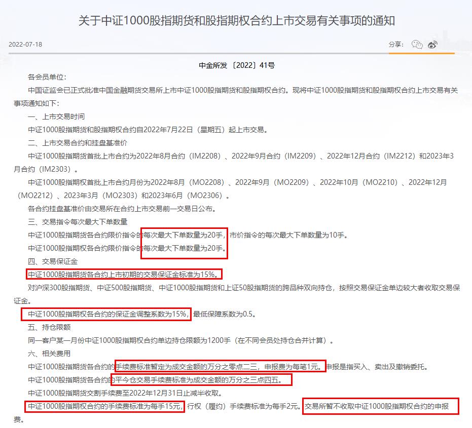 7月18日,證監(jiān)會(huì)網(wǎng)站消息顯示,證監(jiān)會(huì)近日批準(zhǔn)中國(guó)金融期貨交易所開展中證1000股指期貨和期權(quán)交易。相關(guān)合約正式掛牌交易時(shí)間為2022年7月22日。當(dāng)日,中金所發(fā)布關(guān)于中證1000股指期貨和股指期權(quán)合約及相關(guān)業(yè)務(wù)規(guī)則的通知等系列規(guī)則。