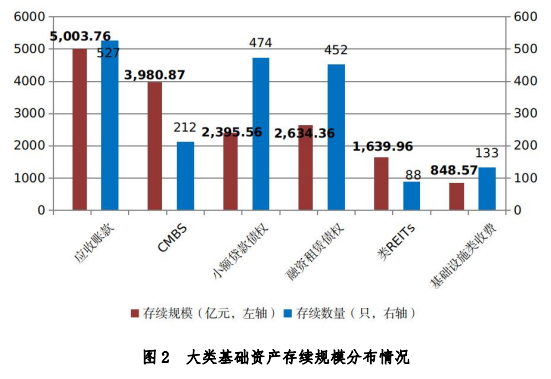 截至2023年1月底,存續(xù)企業(yè)資產(chǎn)證券化產(chǎn)品2206只,存續(xù)規(guī)模19540.34億元,存續(xù)規(guī)模較上月增長0.31%。按基礎(chǔ)資產(chǎn)二級分類來看,應(yīng)收賬款、商業(yè)不動產(chǎn)抵押貸款(CMBS)、小額貸款債權(quán)、融資租賃債權(quán)、類REITs以及基礎(chǔ)設(shè)施類收費(fèi)存續(xù)規(guī)模合計16503.08億元,占總存續(xù)規(guī)模的84.46%?;A(chǔ)設(shè)施公募REITs、保障房、購房尾款等其他類別基礎(chǔ)資產(chǎn)存續(xù)規(guī)模合計3037.26億元,占總存續(xù)規(guī)模的15.54%。