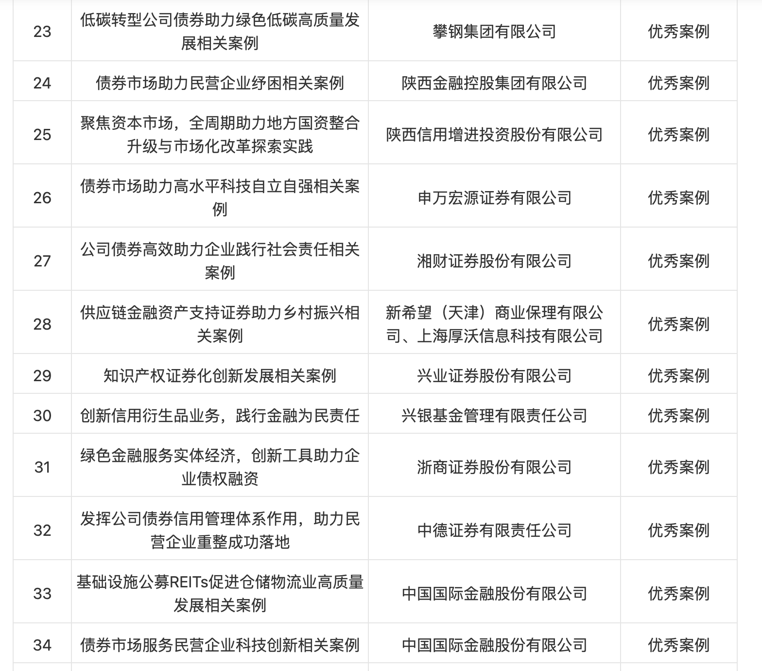 此次征集共收到債券發(fā)行人、證券公司、基金公司、商業(yè)銀行等單位申報的181個案例,包括債券市場服務實體經(jīng)濟、科技創(chuàng)新、綠色發(fā)展、鄉(xiāng)村振興、債券產(chǎn)品創(chuàng)新發(fā)展、債券風險處置等方面。