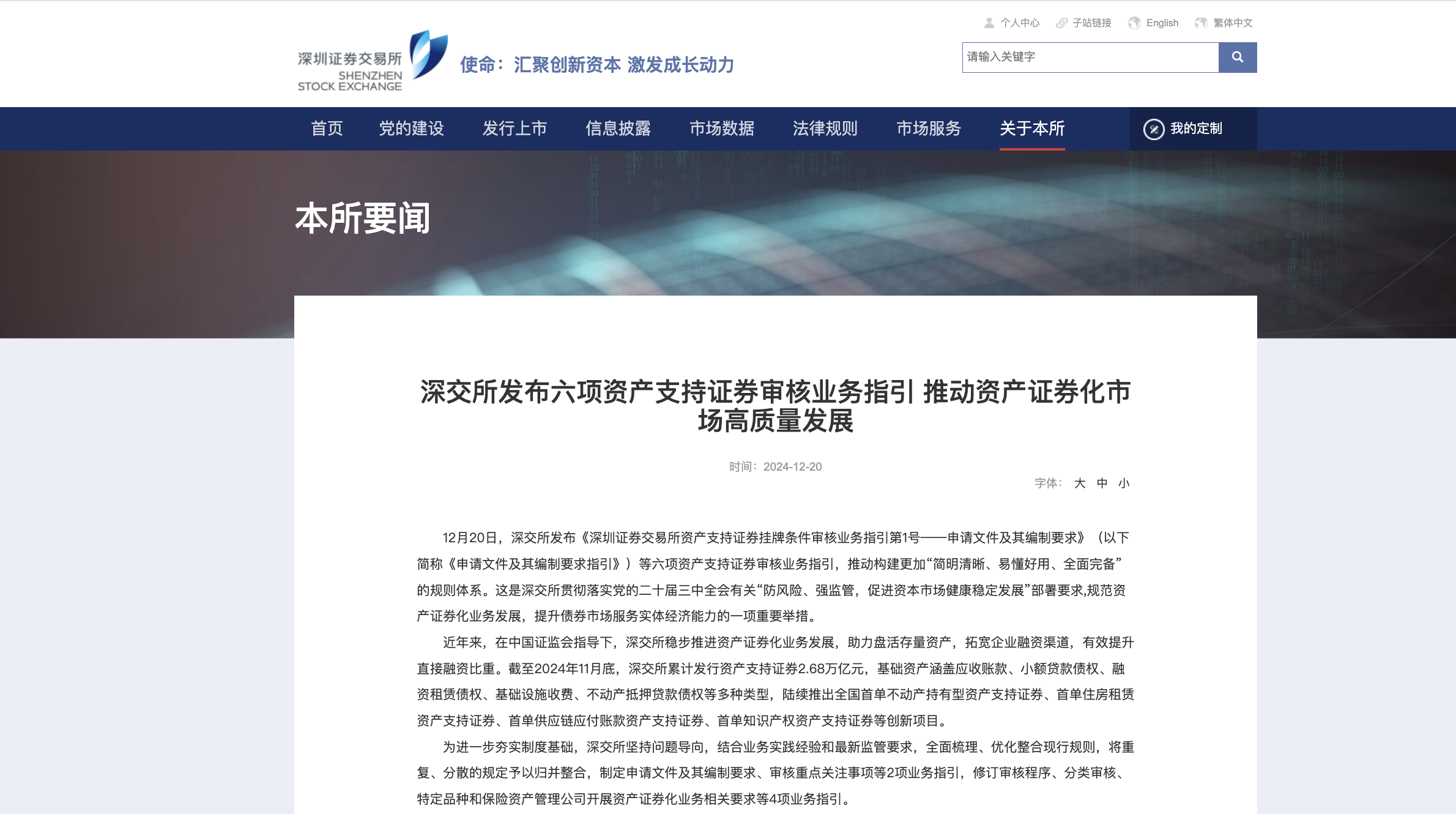 這是深交所貫徹落實(shí)黨的二十屆三中全會(huì)有關(guān)“防風(fēng)險(xiǎn)、強(qiáng)監(jiān)管,促進(jìn)資本市場(chǎng)健康穩(wěn)定發(fā)展”部署要求,規(guī)范資產(chǎn)證券化業(yè)務(wù)發(fā)展,提升債券市場(chǎng)服務(wù)實(shí)體經(jīng)濟(jì)能力的一項(xiàng)重要舉措。
