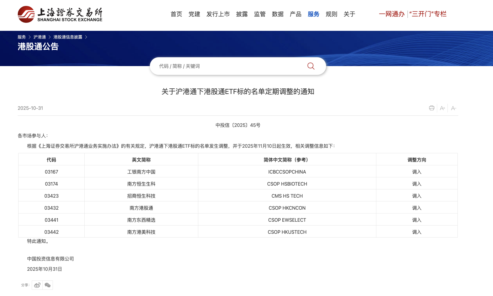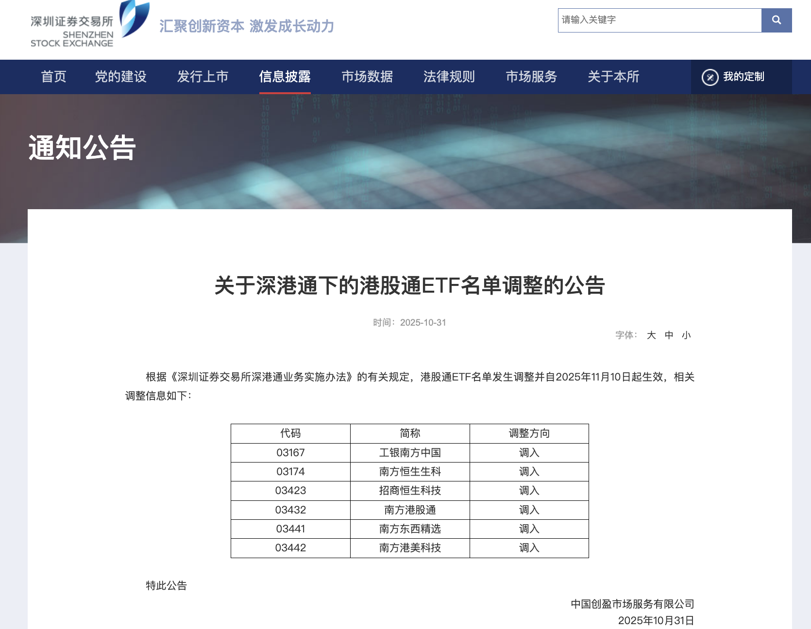 10月31日,記者從滬深交易所官網(wǎng)獲悉,“南向ETF通”最新擴容名單出爐。根據(jù)《上海證券交易所滬港通業(yè)務(wù)實施辦法》《深圳證券交易所深港通業(yè)務(wù)實施辦法》的有關(guān)規(guī)定,港股通ETF標的名單發(fā)生調(diào)整,并于2025年11月10日起生效。