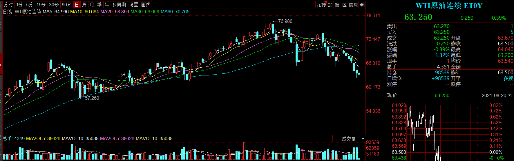 受此影響,8月20日國內商品期貨也多數(shù)收跌。