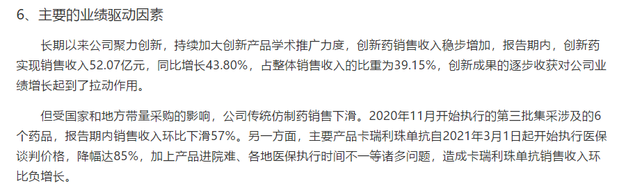 8月19日晚間,恒瑞醫(yī)藥發(fā)布2021年上半年業(yè)績報告,上半年實現(xiàn)歸屬于上市公司股東的凈利潤為26.68億元,同比增長0.21%,增速創(chuàng)下近年來最低紀錄。對于增速下滑的原因,恒瑞醫(yī)藥也在半年報中做出解釋。