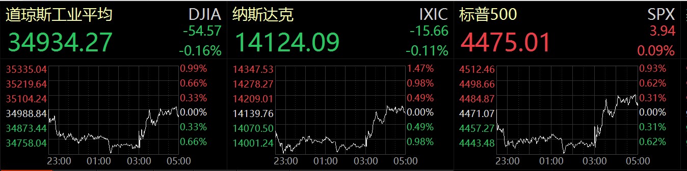 分析人士普遍認(rèn)為,美聯(lián)儲(chǔ)最新會(huì)議紀(jì)要的立場(chǎng)并不如預(yù)期強(qiáng)硬。受此消息影響,當(dāng)?shù)貢r(shí)間2月16日,美股三大指數(shù)盤中集體拉升,截至收盤,美股三大指數(shù)漲跌不一,道瓊斯指數(shù)跌0.16%,報(bào)34934.27點(diǎn);標(biāo)普500指漲0.09%,報(bào)4475.01點(diǎn);納斯達(dá)克指數(shù)跌0.11%,報(bào)14124.09點(diǎn)。