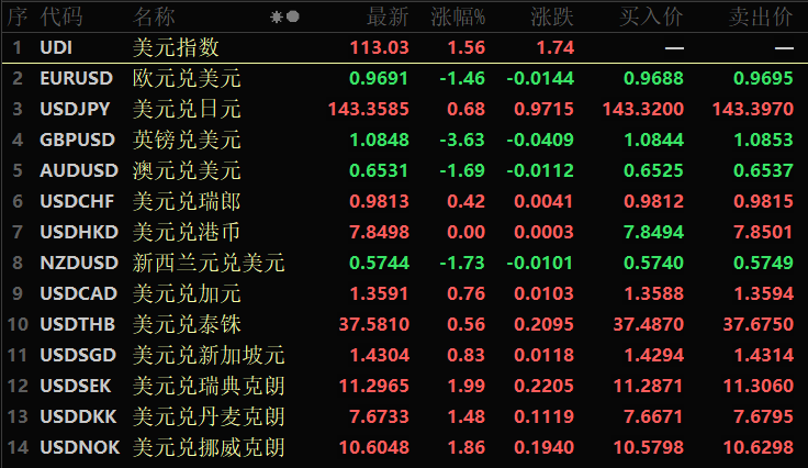 東吳期貨表示,在美聯(lián)儲(chǔ)加息利多以及預(yù)計(jì)年底利率升至4.4高位影響下,本周美元指數(shù)強(qiáng)勁上漲,已創(chuàng)20年來新高,美元指數(shù)突破110來到113高位,我們預(yù)計(jì)美元指數(shù)短期、中期延續(xù)加速上漲態(tài)勢(shì),長期趨勢(shì)明顯上漲。