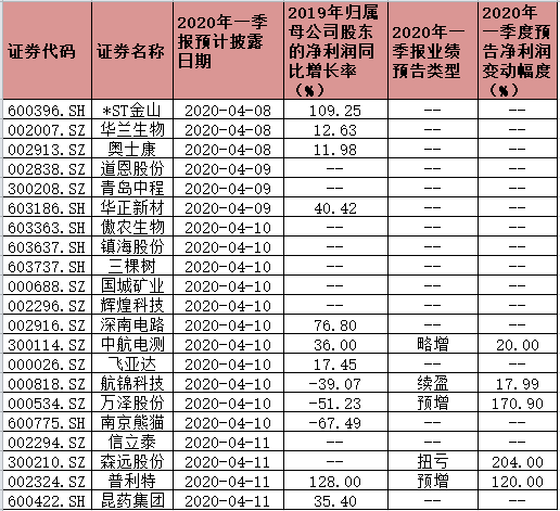 具體來看,滬市公司*ST金山、中小板公司華蘭生物和奧士康率先于4月8日披露一季報業(yè)績,創(chuàng)業(yè)板公司將由青島中程于4月9日率先披露一季報業(yè)績,深市主板首家披露一季報業(yè)績的公司則是飛亞達,該公司將于4月10日上交一季度成績單。