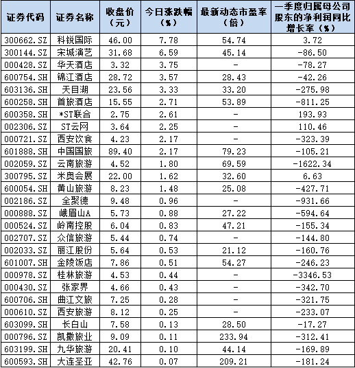 表:5月19日實(shí)現(xiàn)上漲的旅游酒店股一覽