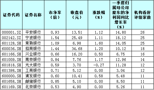 表:機構(gòu)看好評級居前的銀行股一覽