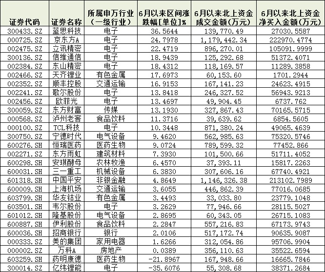 表:6月以來北上資金凈買入的28只個股