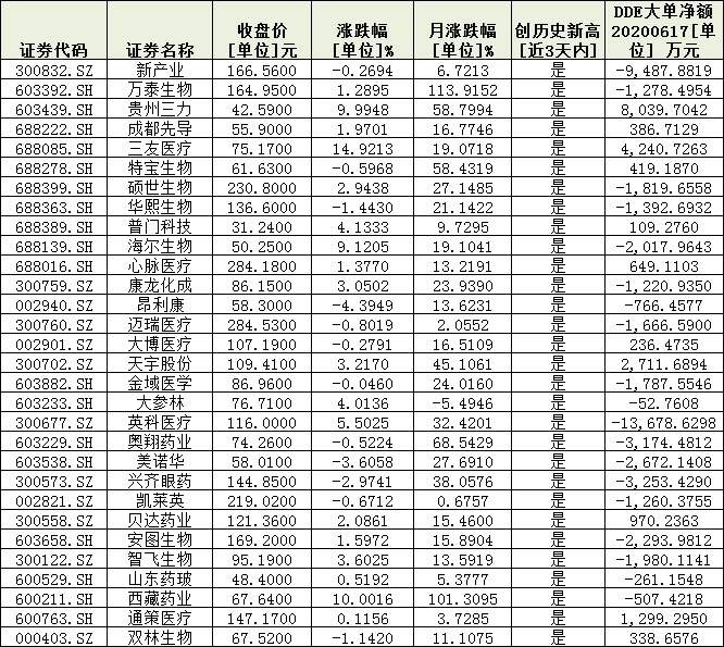 表:創(chuàng)歷史新高的30只醫(yī)藥股情況: