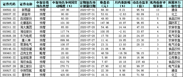 表:最近1個(gè)月機(jī)構(gòu)給予看好評(píng)級(jí)的中報(bào)預(yù)喜股