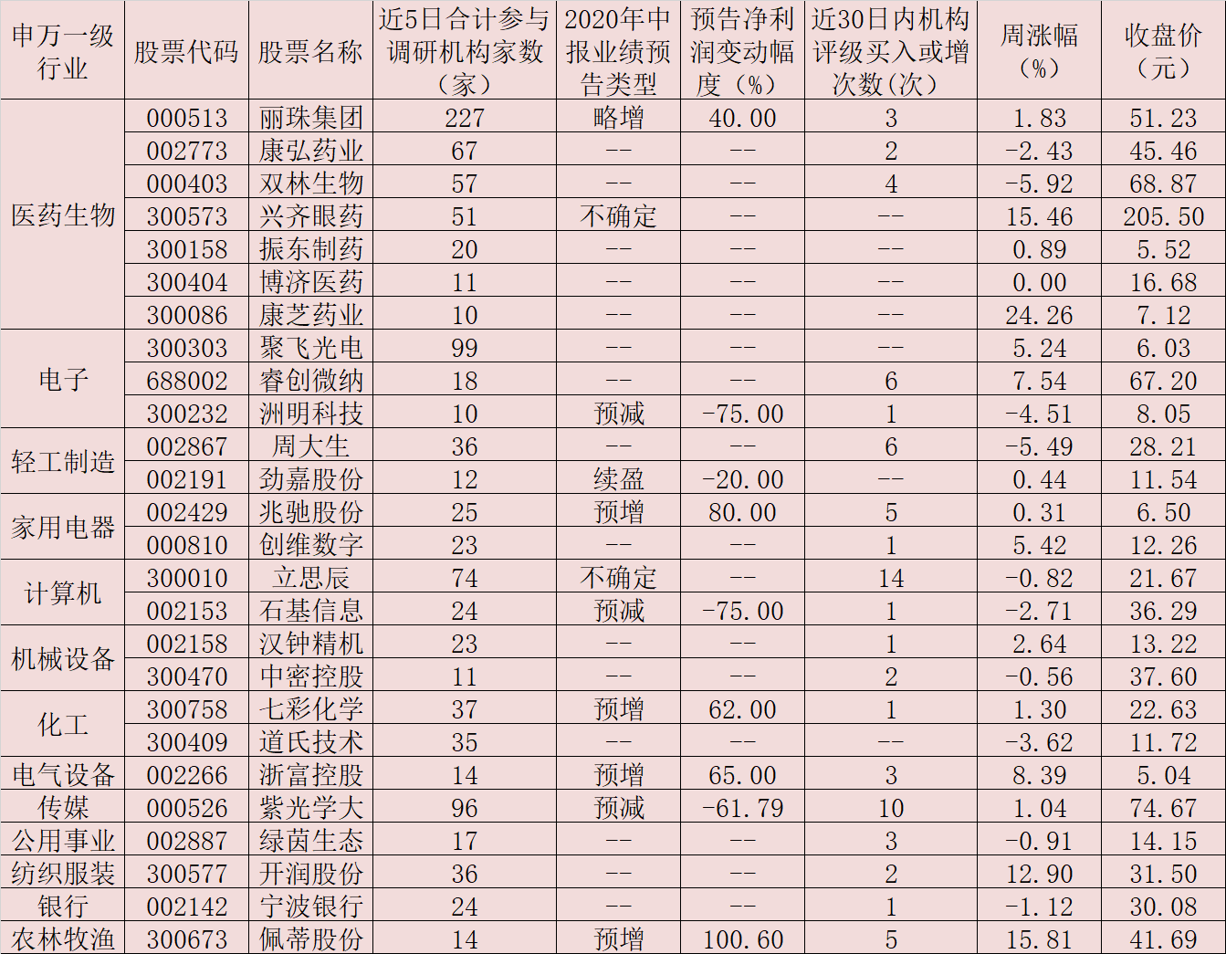 表:近5日獲得10家以上機構(gòu)調(diào)研的個股一覽