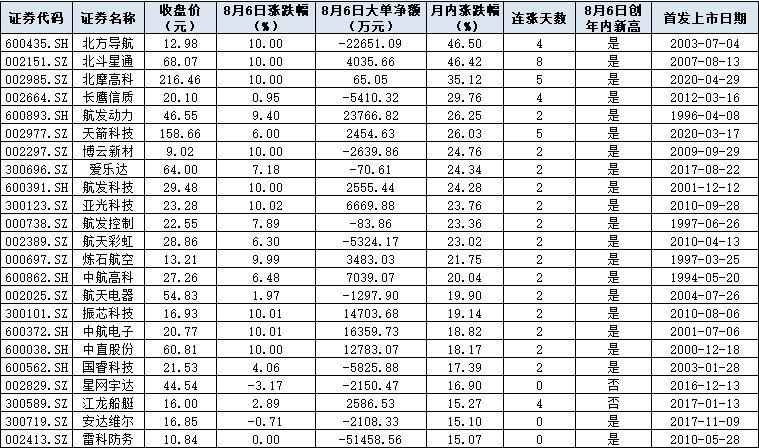 爆款頻出的軍工板塊,形成滾雪球效應(yīng)。8月6日,在滬深兩市股指震蕩盤整之際,軍工板塊大面積走強(qiáng)整體漲幅超過4%,60只成份股實(shí)現(xiàn)不同程度的上漲,占比超八成,其中,12只軍工股攜手漲停。不僅如此,33只軍工股股價(jià)創(chuàng)年內(nèi)新高,盡顯強(qiáng)勢(shì)。
