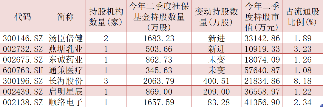 可以看到,以社?;馂榇淼拈L線資金提前布局機構(gòu)調(diào)研品種。統(tǒng)計顯示,上述29只個股中,截至今年二季度末,共有7只個股被社?;鸪謧}。具體來看,湯臣倍健、燕塘乳業(yè)等2只個股成為今年二季度社?;鹦逻M品種,持股數(shù)量分別為1683.23萬股、503.66萬股;并對長海股份、啟明星辰等2只個股進行繼續(xù)加倉操作,社?;鹪龀謹?shù)量分別為400.51萬股、209萬股。對照來看,八月首周(8月3日至8月7日),上述7只個股中,共有5只個股期間股價實現(xiàn)上漲且跑贏大盤(滬指同期上漲1.33%),僅有湯臣倍健、順絡(luò)電子兩只股票期間股價下跌。