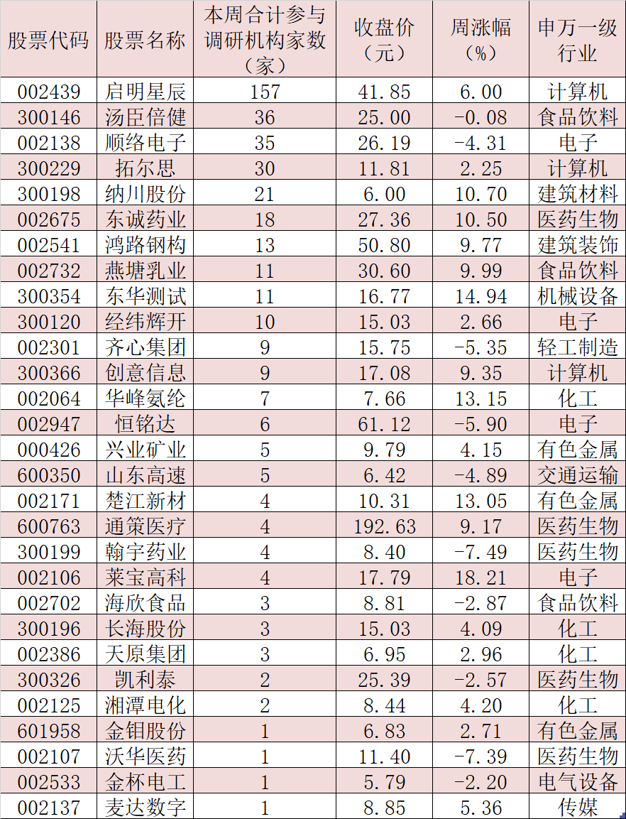 表:本周獲得機構(gòu)調(diào)研的個股一覽