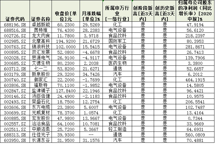 表:22只股價(jià)創(chuàng)出歷史新高的業(yè)績增長股情況