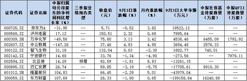 可以看到,除北上資金外,場內(nèi)短線資金也對上述個(gè)股較為關(guān)注,9月3日,有5只個(gè)股呈現(xiàn)大單資金凈流入狀態(tài),合計(jì)吸金3.65億元,在資金的助力下,上述5只個(gè)股當(dāng)日股價(jià)表現(xiàn)全部跑贏大盤(滬指跌幅0.58%),其中,中公教育、萬華化學(xué)、瀘州老窖等個(gè)股漲幅更是超過2%。