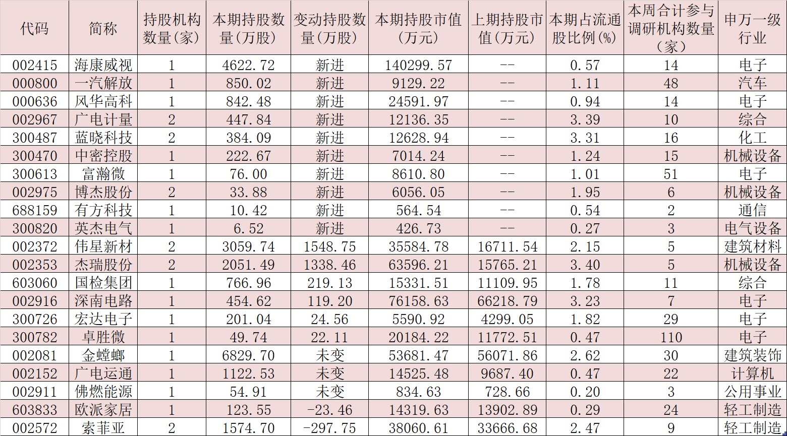 可以看到,以QFII為代表的外資也提前布局了近期機(jī)構(gòu)調(diào)研標(biāo)的。統(tǒng)計(jì)顯示,上述189只個(gè)股中,截至今年二季度末,共有21只個(gè)股獲得QFII持倉(cāng),合計(jì)持股市值為31.94億元。其中,16只個(gè)股成為今年二季度QFII新進(jìn)增持的重點(diǎn)品種,QFII新進(jìn)持有??低暋⒁黄夥?、風(fēng)華高科、廣電計(jì)量、藍(lán)曉科技、中密控股、富瀚微、博杰股份、有方科技、英杰電氣等10只個(gè)股,并對(duì)偉星新材、杰瑞股份、國(guó)檢集團(tuán)、深南電路、宏達(dá)電子、卓勝微等6只個(gè)股進(jìn)行繼續(xù)加倉(cāng)操作,這16只個(gè)股QFII合計(jì)增持資金達(dá)31.49億元。