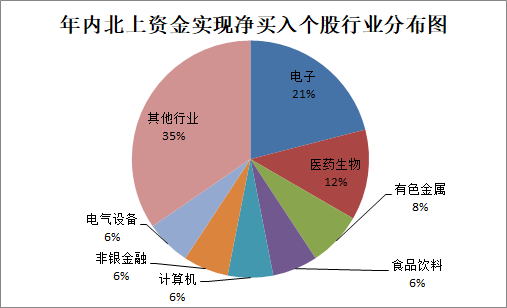 行業(yè)特征方面,上述81只年內(nèi)北上資金青睞個股主要扎堆在電子、醫(yī)藥生物、有色金屬等三大行業(yè),涉及個股數(shù)量分別為17只、10只、6只。另外,食品飲料、計算機、非銀金融、電氣設(shè)備等行業(yè)也均有5只個股入圍??梢钥吹?,以醫(yī)藥生物、食品飲料等為代表的大消費類龍頭白馬股和科技類龍頭股成為年內(nèi)北上資金重點布局的領(lǐng)域。