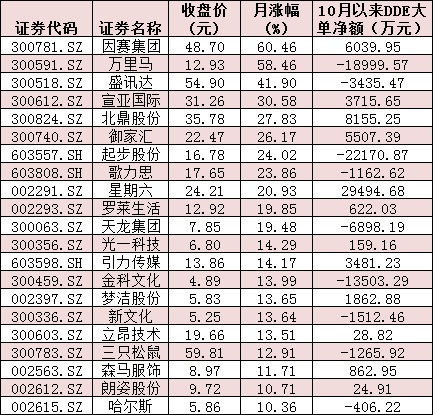 表:10月份以來漲幅超10%的網(wǎng)紅經(jīng)濟(jì)概念股: