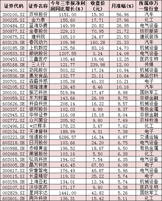 表:10月以來(lái)漲幅超5%的業(yè)績(jī)翻番股情況