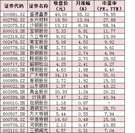 表:10月以來實(shí)現(xiàn)上漲的鋼鐵股情況