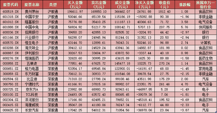四、周一(12月7日)滬、深股通前十大成交活躍股交易情況