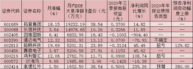 記者進(jìn)一步統(tǒng)計(jì)發(fā)現(xiàn),12月份以來,板塊內(nèi)共有14只概念股備受大單資金的青睞,拓普集團(tuán)、長(zhǎng)信科技、四維圖新、通達(dá)電氣、路暢科技、賽微電子、鴻利智匯、ST海馬、高德紅外等9只概念股期間累計(jì)大單資金凈流入均在1000萬元以上,合計(jì)吸金6.40億元。