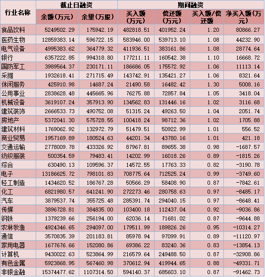 六、截至12月10日申萬一級行業(yè)兩融交易情況