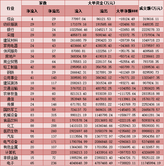二、周五(12月11日)申萬一級行業(yè)大單資金流向