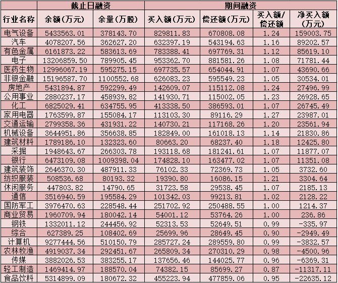 六、截至12月21日申萬級一級行業(yè)兩融交易情況