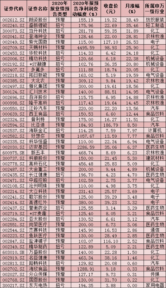 表:月內(nèi)跑贏上證指數(shù)的年報(bào)凈利潤(rùn)有望翻番股情況