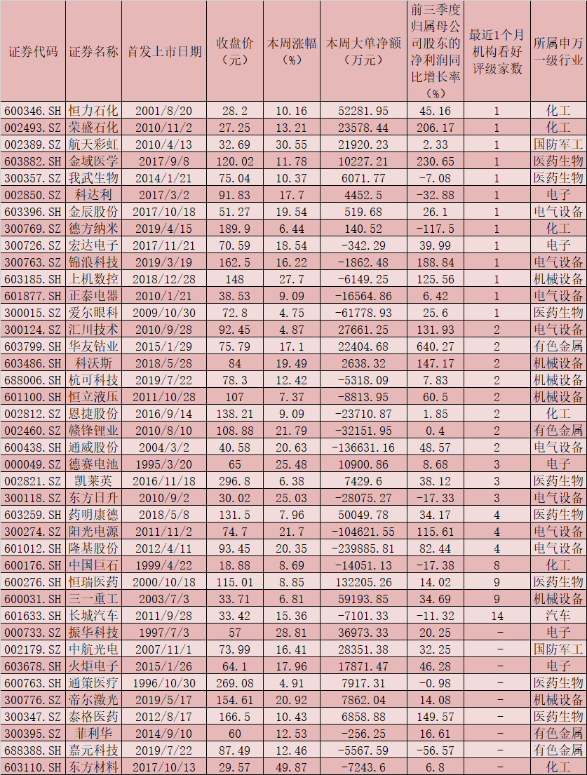 第五,券商持續(xù)推薦。上述40只強(qiáng)勢(shì)股中,最近1個(gè)月,有31只個(gè)股獲券商給予“買入”或“增持”等看好評(píng)級(jí),占比77.5%。長城汽車、三一重工、恒瑞醫(yī)藥、中國巨石等4只個(gè)股券商看好評(píng)級(jí)家數(shù)均在8家及以上,分別為14家、9家、9家、8家。