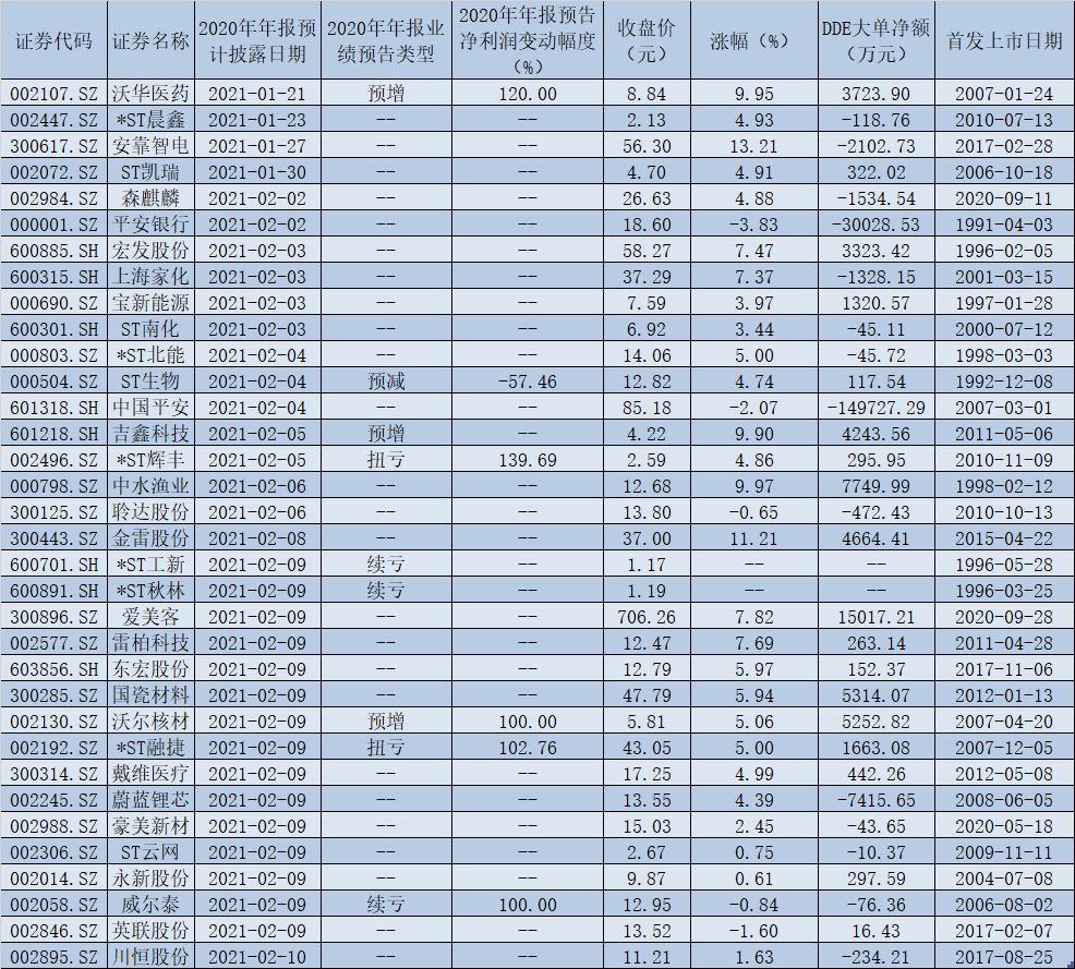 表:34家計劃在春節(jié)長假前披露2020年年報公司今年首日市場表現(xiàn)一覽