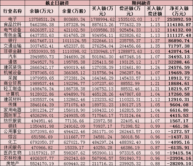 六、截至1月5日申萬級一級行業(yè)兩融交易情況