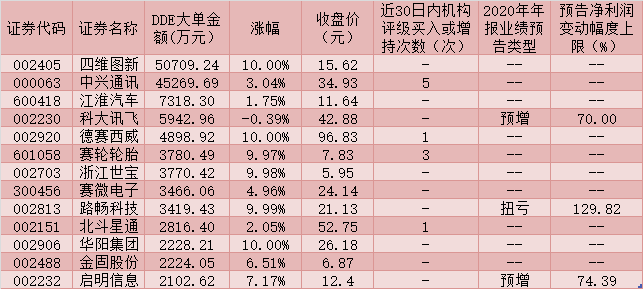 表:本周一獲超2000萬元大單資金搶籌的智能汽車概念股