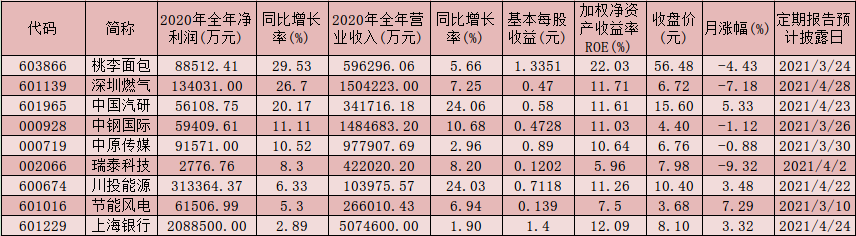 從凈利潤(rùn)同比增幅來看,上述9家公司中,桃李面包凈利潤(rùn)同比增長(zhǎng)居首,達(dá)到29.53%,而深圳燃?xì)猓?6.7%)、中國(guó)汽研(20.17%)、中鋼國(guó)際(11.11%)和中原傳媒(10.52%)等公司2020年全年凈利潤(rùn)都同比增長(zhǎng)也均在10%以上。
