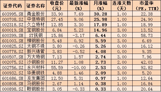 統(tǒng)計(jì)發(fā)現(xiàn),今年以來(lái),有23只鋼鐵股現(xiàn)身滬股通、深股通前十大成交活躍股榜單,其中,包括寶鋼股份、南鋼股份、鞍鋼股份、方大特鋼、華菱鋼鐵、新興鑄管等在內(nèi)的14只鋼鐵股,期間被北上資金凈買(mǎi)入,成為外資加倉(cāng)的對(duì)象。