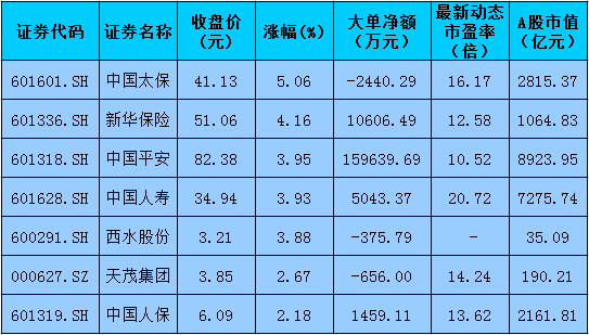 2月18日,A股保險板塊指數(shù)大漲4.06%,單日市值增長844.41億元,板塊內(nèi)7只成份股全線飄紅,中國太保領(lǐng)漲,漲幅達到5.06%,緊隨其后的新華保險也大漲4.16%,此外,中國平安、中國人壽、西水股份等個股漲幅也均在3%以上。