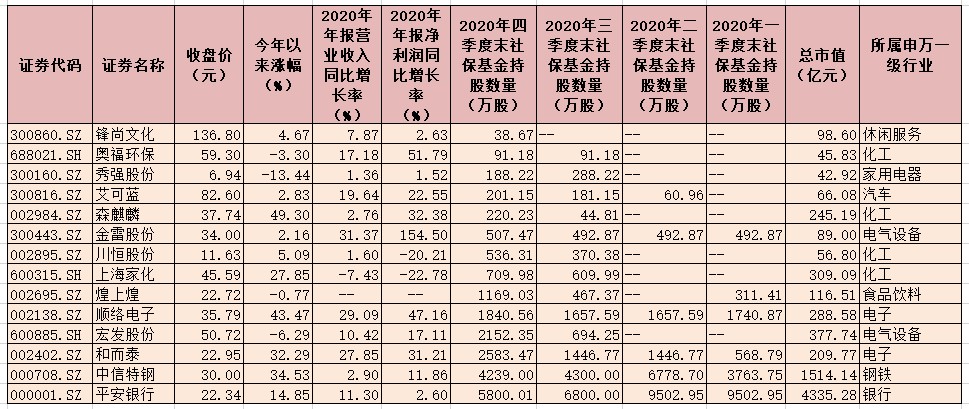 表:社?;?020年四季度末持倉(cāng)14只個(gè)股一覽