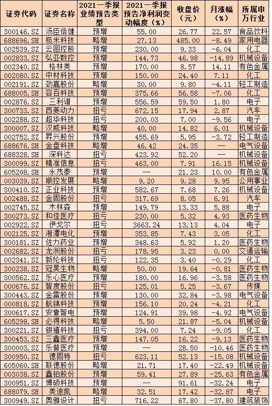 表:43家公司2021年一季報(bào)業(yè)績(jī)預(yù)喜情況: