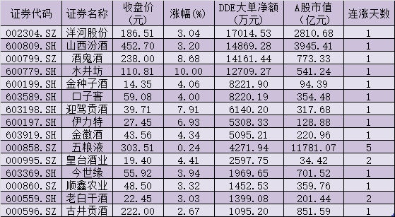 除了機(jī)構(gòu)的積極看好,真金白銀的搶籌也成為近期白酒股的一大看點(diǎn)。僅從5月20日來(lái)看,15只白酒股合計(jì)吸金10.45億元。具體來(lái)看,洋河股份、山西汾酒、酒鬼酒、水井坊等4只個(gè)股大單資金凈流入均在1億元以上,分別為17014.53萬(wàn)元、14869.28萬(wàn)元、14161.44萬(wàn)元、12709.27萬(wàn)元。