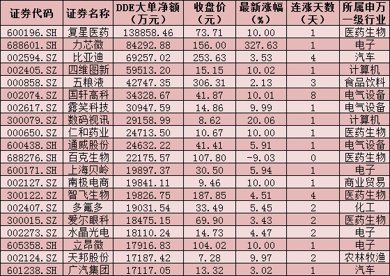 一、周一(6月28日)DDE大單資金凈買(mǎi)入TOP20