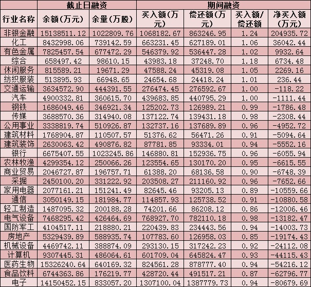 六、截至6月25日申萬(wàn)一級(jí)行業(yè)兩融交易情況