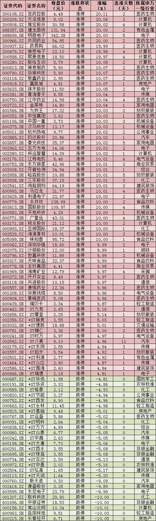 板塊方面,申萬一級28個行業(yè)中,有8個行業(yè)實現(xiàn)上漲,其中,房地產(chǎn)行業(yè)漲幅居首,達2.17%,緊隨其后的銀行、醫(yī)藥生物和食品飲料等行業(yè)漲幅均超1%,分別為1.86%、1.66%和1.32%。另外,國防軍工、綜合、汽車和通信等行業(yè)跌幅均超2%。