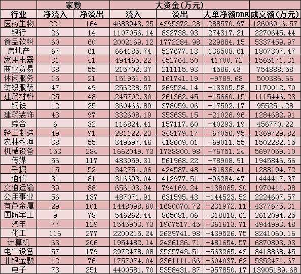 二、周四(7月1日)申萬一級行業(yè)大單資金流向