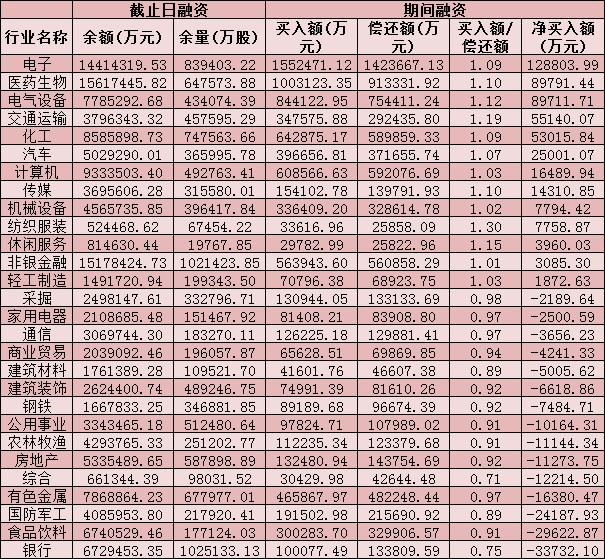 五、截至6月30日申萬一級行業(yè)兩融交易情況