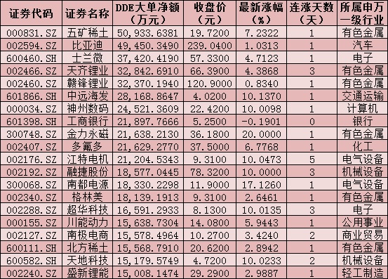 一、周五(7月2日)DDE大單資金凈買入TOP20
