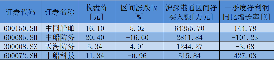 表:4月1日至7月12日,船舶制造板塊獲北向資金凈買入額超500萬元個(gè)股一覽
