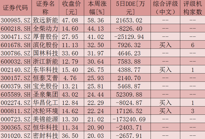 表:氫能源板塊漲幅超20%個股一覽(8月9日至8月13日)